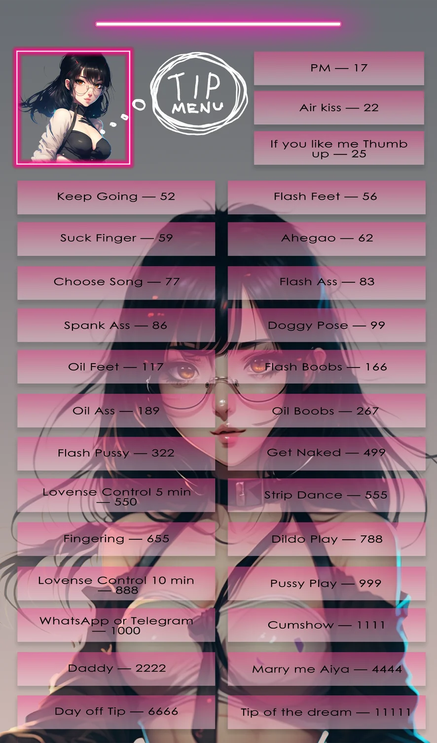 Dirty Talk, Deepthroat, Masturbation, Blowjob, Striptease, Erotic Dance, Topless, Shower, Office, Orgasm, Sex Toys, Facesitting, Spanking, Ahegao, Dildo or Vibrator, Creampie, Oil Show, Fingering, Squirt, Twerk, Doggy Style, Hardcore, Nipple Toys, Facial, Tittyfuck, Cowgirl, Humiliation, Camel Toe, Gape, Double Penetration, Handjob, Ass to Mouth, Smoking, 69 Position, Upskirt, Anal Toys, Flashing, Gagging, Fisting, Strapon